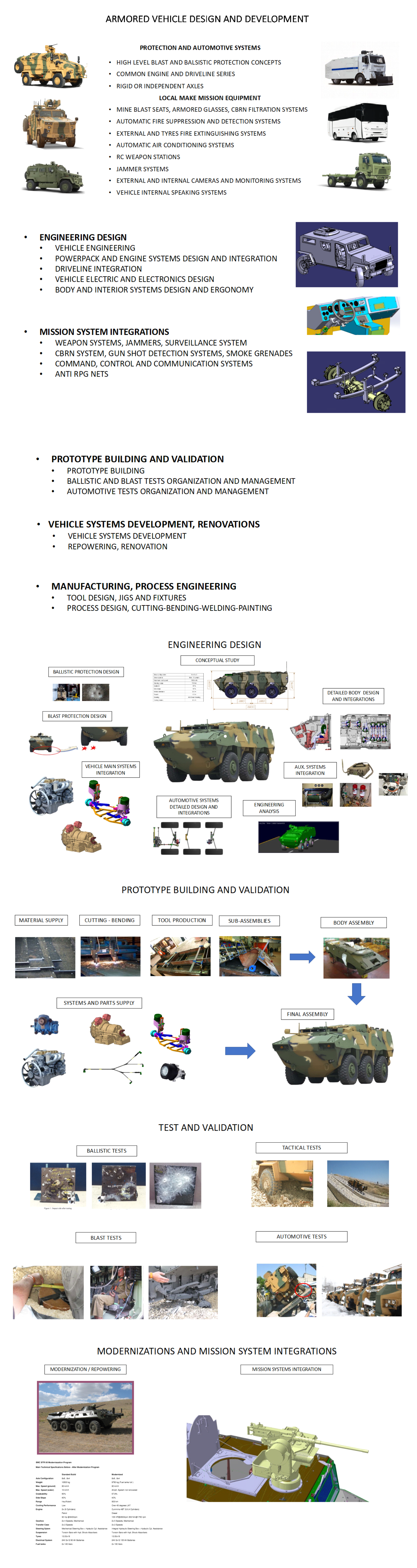 Özellikle hafif ve ağır ticari kamyon ve bunların versiyonlarından oluşan askeri projeler en büyük tecrübeli olduğumuz alandır.